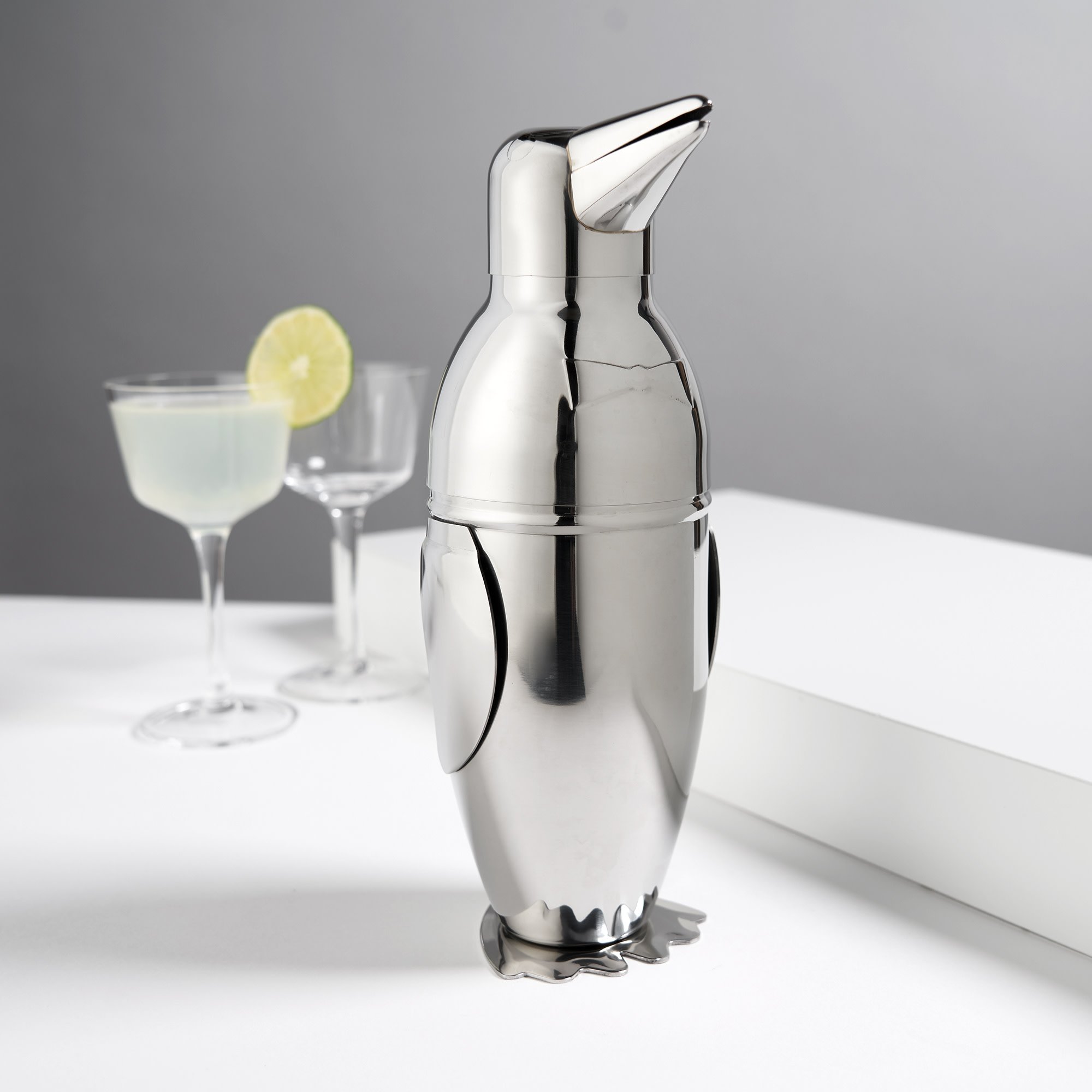 Bow-tied, tuxedo-ed and stately in stainless steel, the Emperor penguin cocktail shaker stands tall amongst standard mixology tools to set your bar collection apart. The vessel holds 17 ounces and incorporates a built-in strainer. Set Includes Strainer And Cap Stainless Steel Construction 17 Ounce Capacity