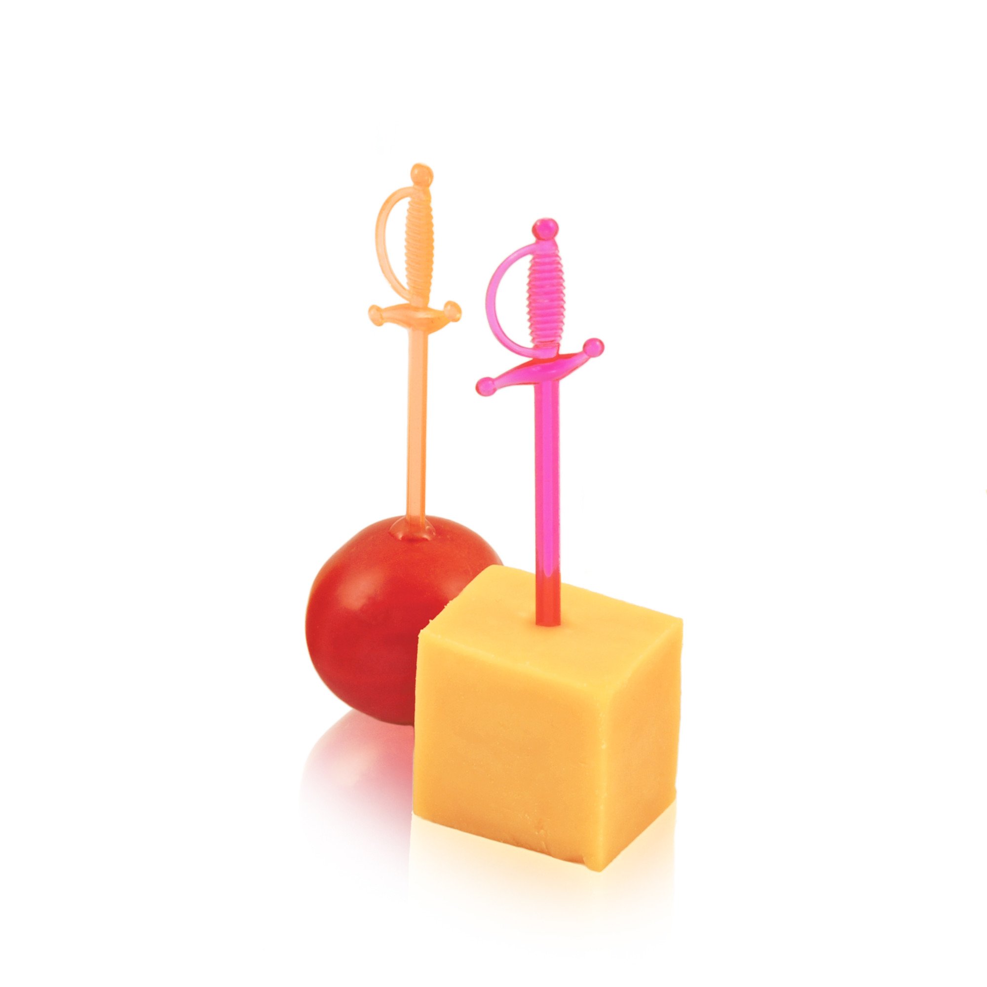 Elevate your next gathering with True’s Spear Appetizer Picks. These mini sword toothpicks add a fun, piratical touch to your appetizers and drinks, making them the perfect entertaining accessory. Set includes 50 colorful food picks, each measuring 3.5 inches, that are sure to stand out at your next event. Whether you're hosting a pirate-themed party or simply enjoying cocktails at home, these sword toothpicks will surely impress your guests with their unique design and vibrant hues. The Spear Appetizer Picks are crafted from food-safe plastic, ensuring that they are not only fun but safe for consumption. Perfect for skewering fruit pieces, cheese bites, or cocktail garnishes, these picks are versatile and practical. Use them as cocktail skewers for a classic tiki cocktail topper. They're just the right size to add a tropical feel to your Mai Tai, Pina Colada, or Hurricane cocktail. The bright colors of these plastic cocktail picks can also enhance the visual appeal of non-alcoholic beverages. These picks also work well as appetizer skewers. Use them to serve bite-sized appetizers or canapés at your next party. The sword design makes these picks ideal for pirate-themed parties, but they're versatile enough to use for other themes as well.