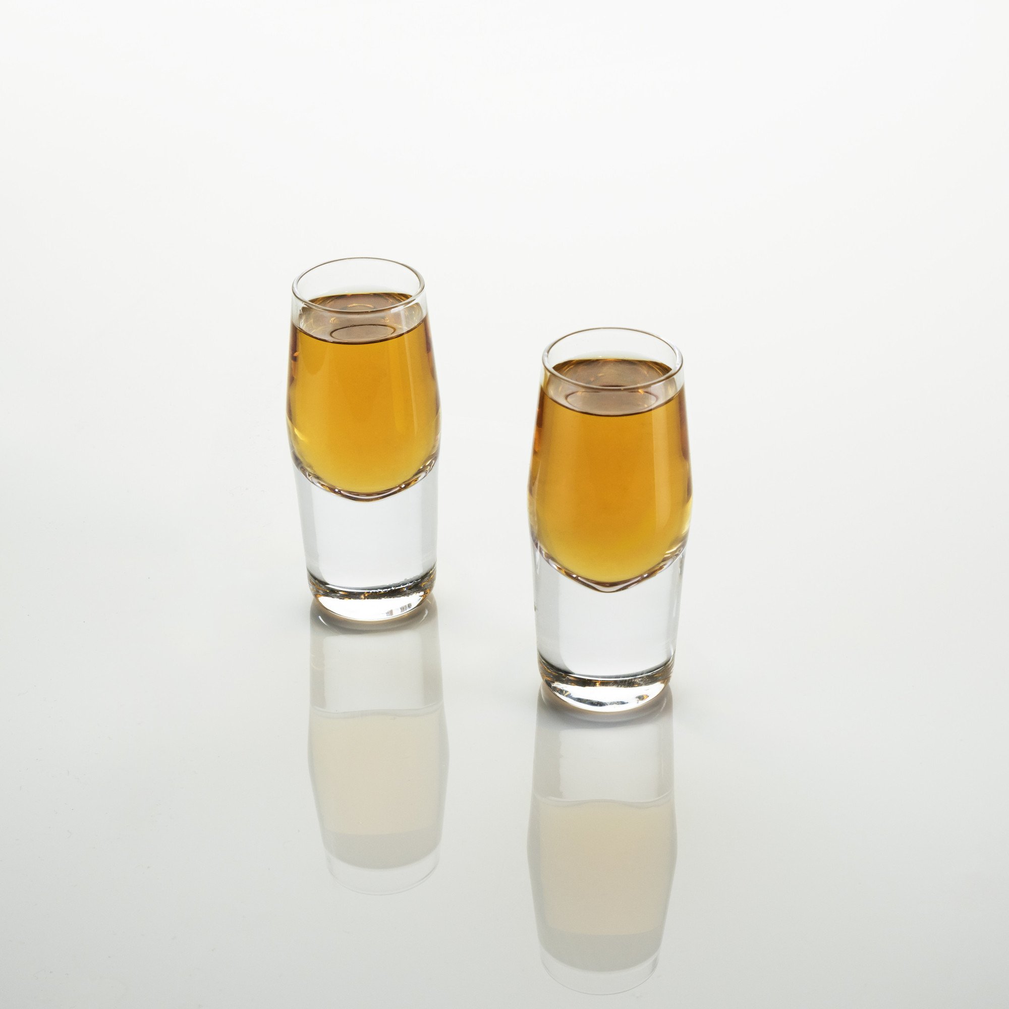 This duo of elevated heavyweight shot glasses is hand-crafted from lead-free crystal to hold two ounces apiece of your preferred libation. Features a polished curving rim and generously-sized base, best used for knocking back beverages. • Lead-free crystal glass • Accommodates 2 oz comfortably • Dishwasher safe • Set of 2 • Handmade product, weight may vary With an ideal weight and feel, this set of shot glasses feels as good in your hand as they look on your bar. Slice some limes and get out the tequila!