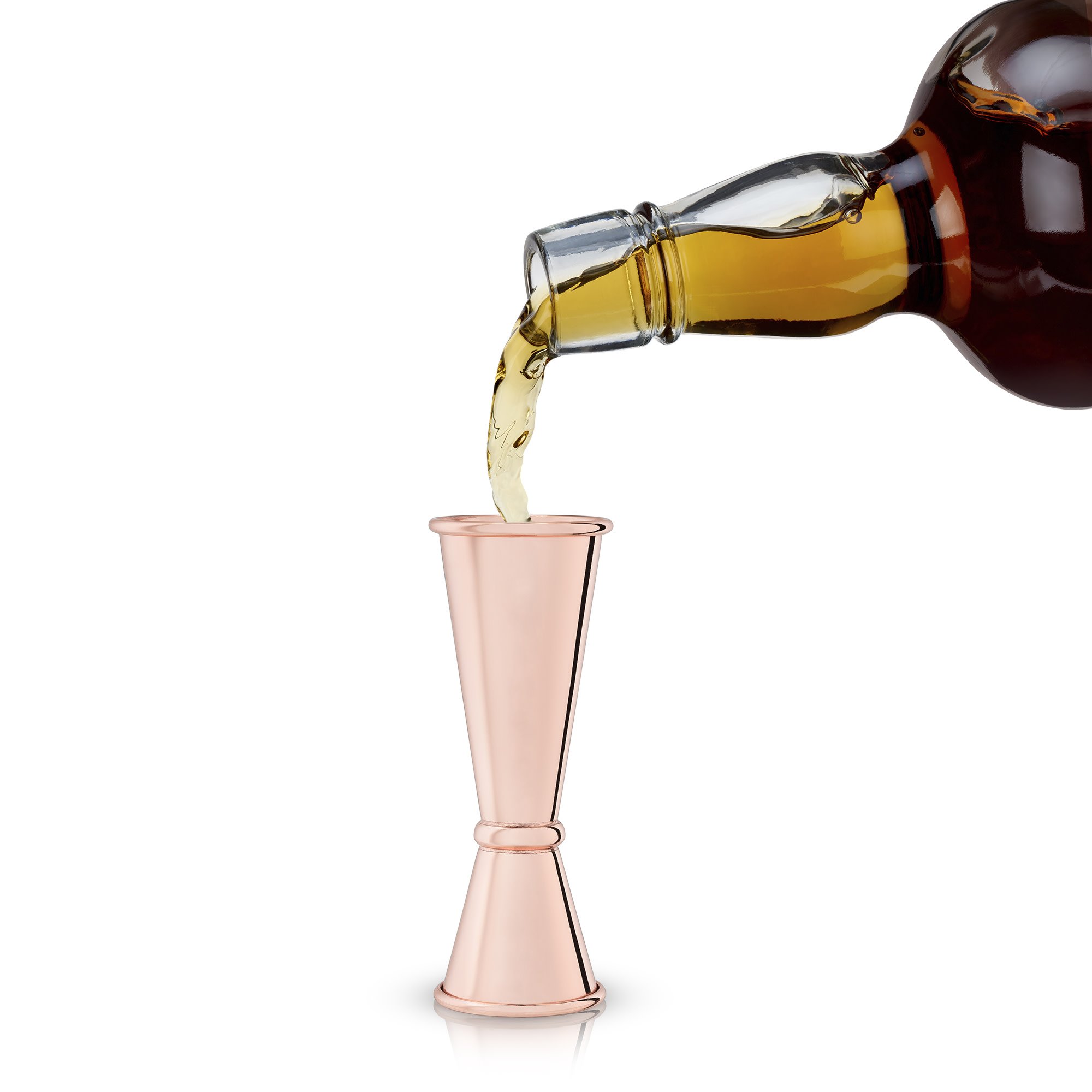 Cast in radiant copper with a band that separates its one- and two-ounce sections, the interior of each side of our professional Japanese-style double jigger is scored with pinpoint mixology measurements (1.5, 0.75 and 0.5 ounces).