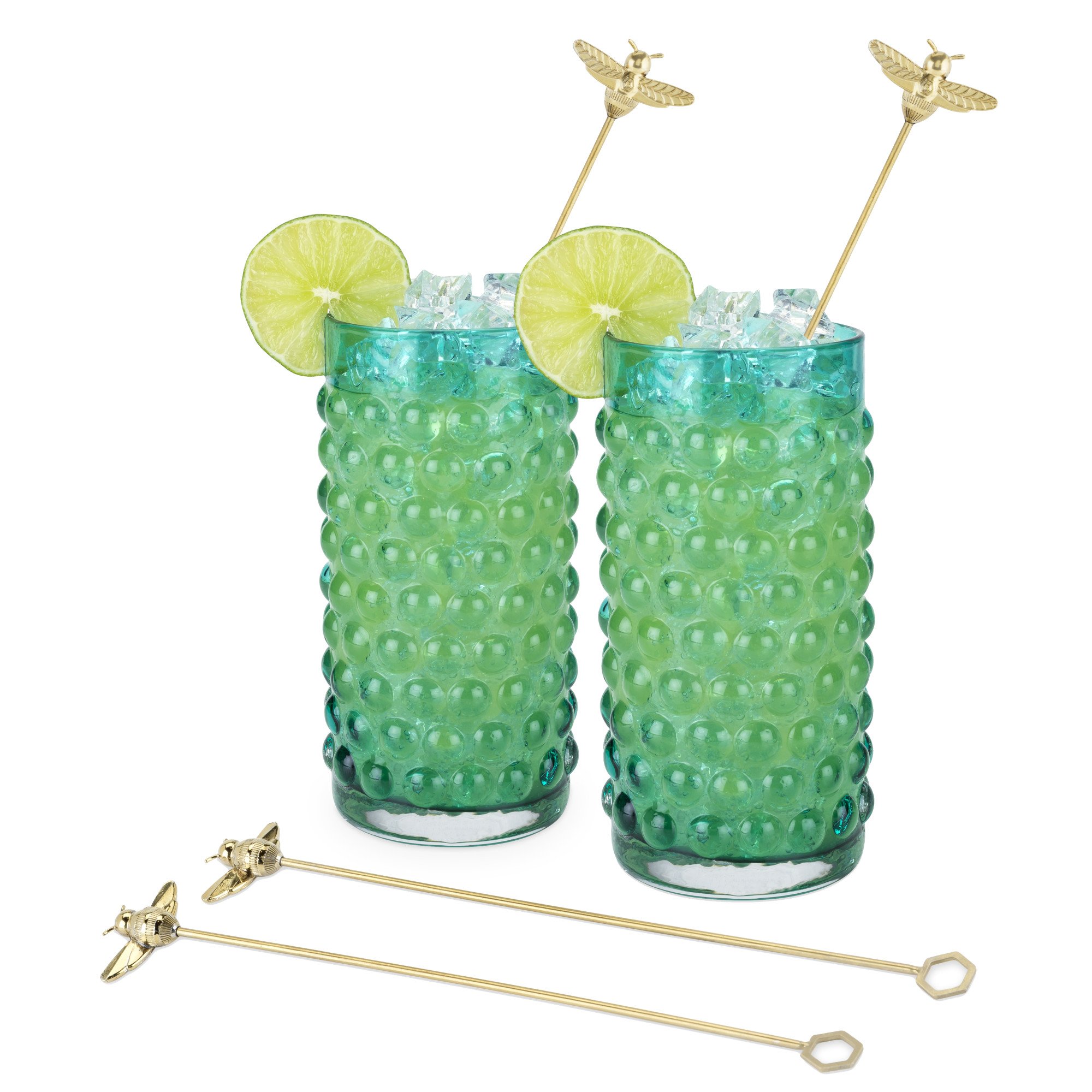Cap your next sumptuous serving of beverages with understated opulence, brought to dazzling reality through this collection of bee stir sticks. Golden plating sheaths durable stainless steel, creating a buzz worthy effect and making sure your cocktails are the bees’ knees. Stainless steel and zinc alloy with gold plated finish. Set of 4 drink stirrers. 8.75 inches long.