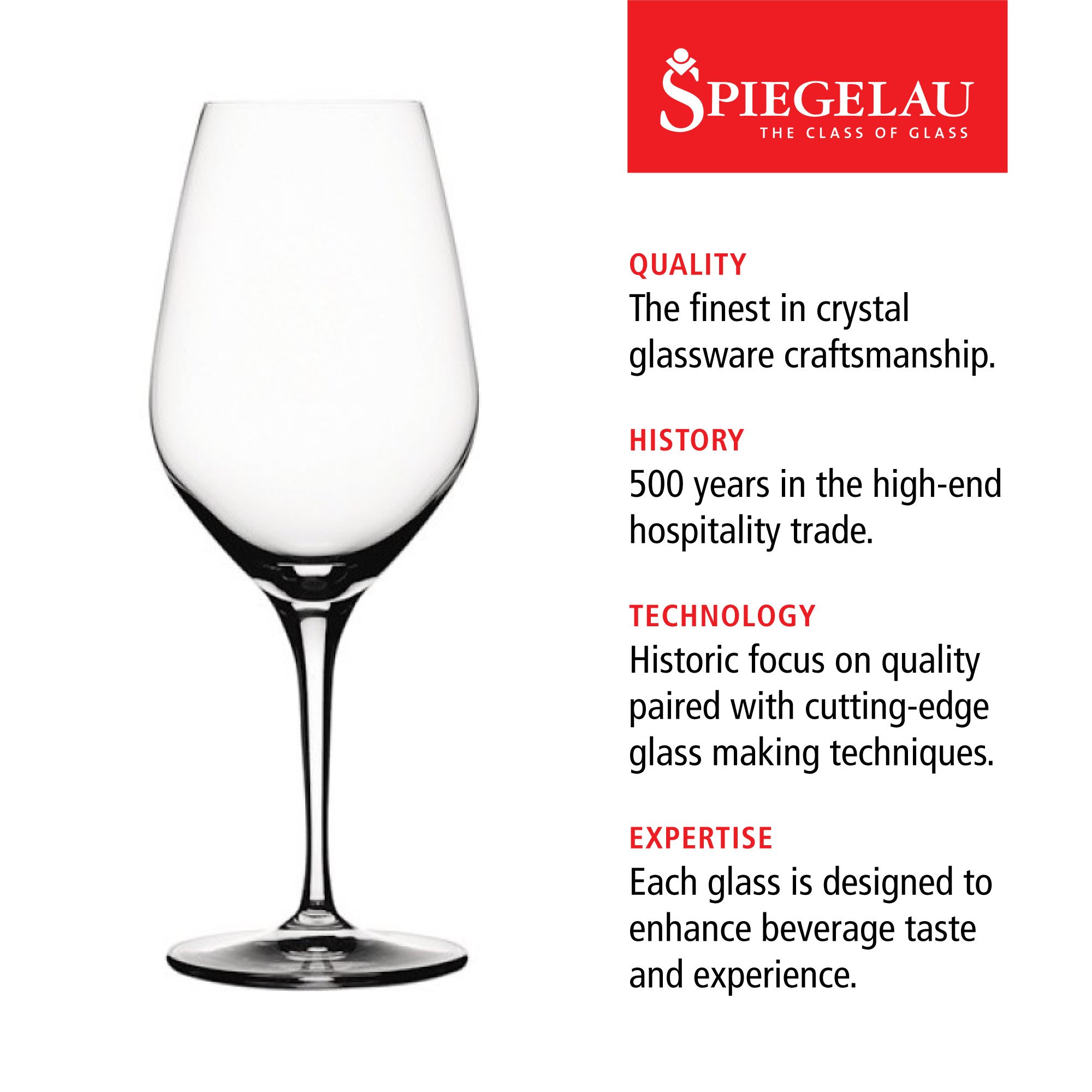 Spiegelau sets the industry standard for high-quality, professional-grade glassware. Combining centuries of expertise with modern techniques, Spiegelau consults highly-respected sommeliers and world-class restaurants to ensure that each glass is designed to enhance your drinking experience. Their glassware is perfect for the modern wine connoisseur: distinctively contemporary, elegant, and always about the wine. • Lead-free crystal • Stemmed glassware • Made in Germany • Dishwasher safe • Set of 4 Crystal clarity, classic yet fresh silhouettes, and thoughtful craftsmanship make Spiegelau the top choice for wine experts. This award-winning fine-dining glassware will elevate your home bar—your best vintage deserves a superior glass.