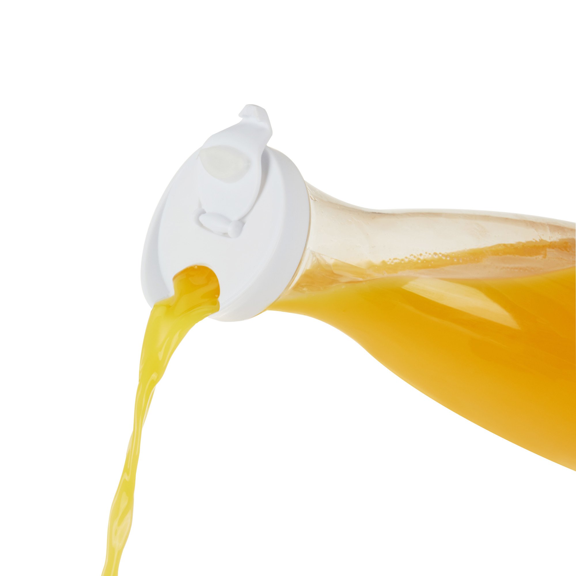 Keep cold drinks at the ready with this carafe. The flip-top lid is perfect for pouring and preventing spills, while the carafe conveniently fits in most standard fridge doors. Use this carafe for iced coffee, spa water, iced tea, or your favorite cold drink. These plastic juice bottles with lids make great drink dispensers for parties or mimosa bar supplies and are perfect for fresh orange juice or grapefruit juice. Use this plastic pitcher with lid as a milk container for refrigerators or whatever else you need like batch cocktails for a party. Care: Hand wash recommended. 54 oz capacity. BPA-free PET