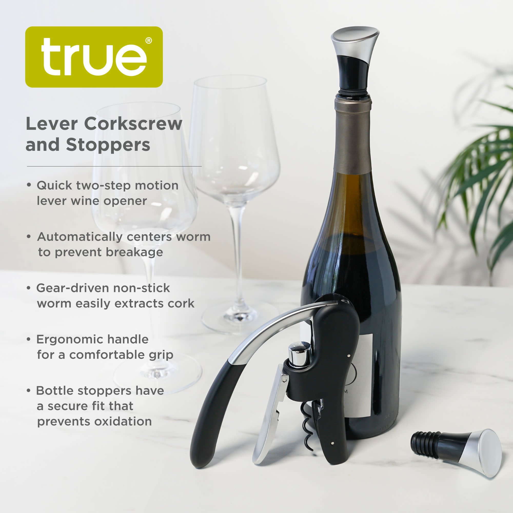 Lever Corkscrew and Stoppers, Set of 3 in SIOC pkg by True Lever Corkscrew and Stoppers, Set of 3 in SIOC pkg by True Lever Corkscrew and Stoppers, Set of 3 in SIOC pkg by True Lever Corkscrew and Stoppers, Set of 3 in SIOC pkg by True