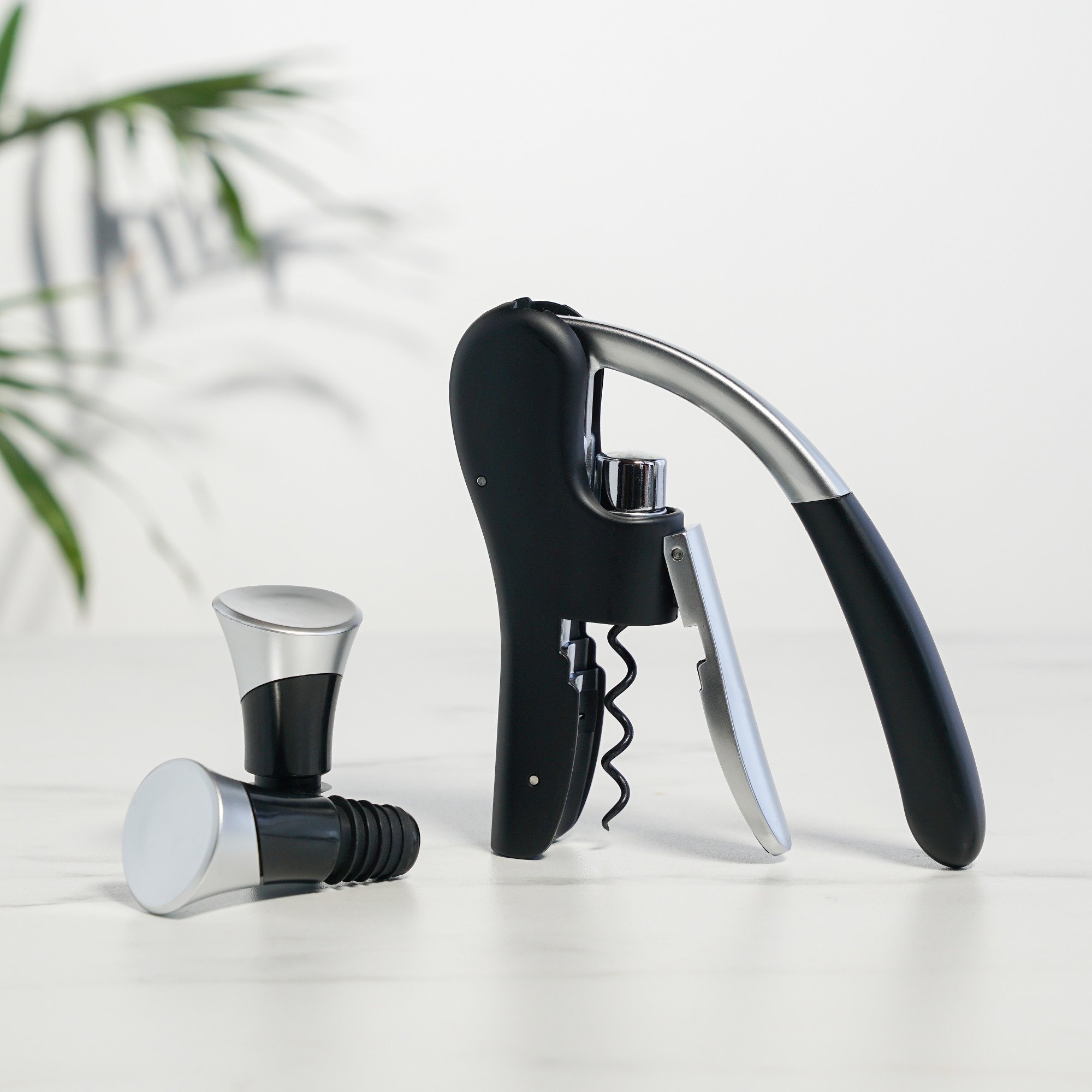 Lever Corkscrew and Stoppers, Set of 3 in SIOC pkg by True