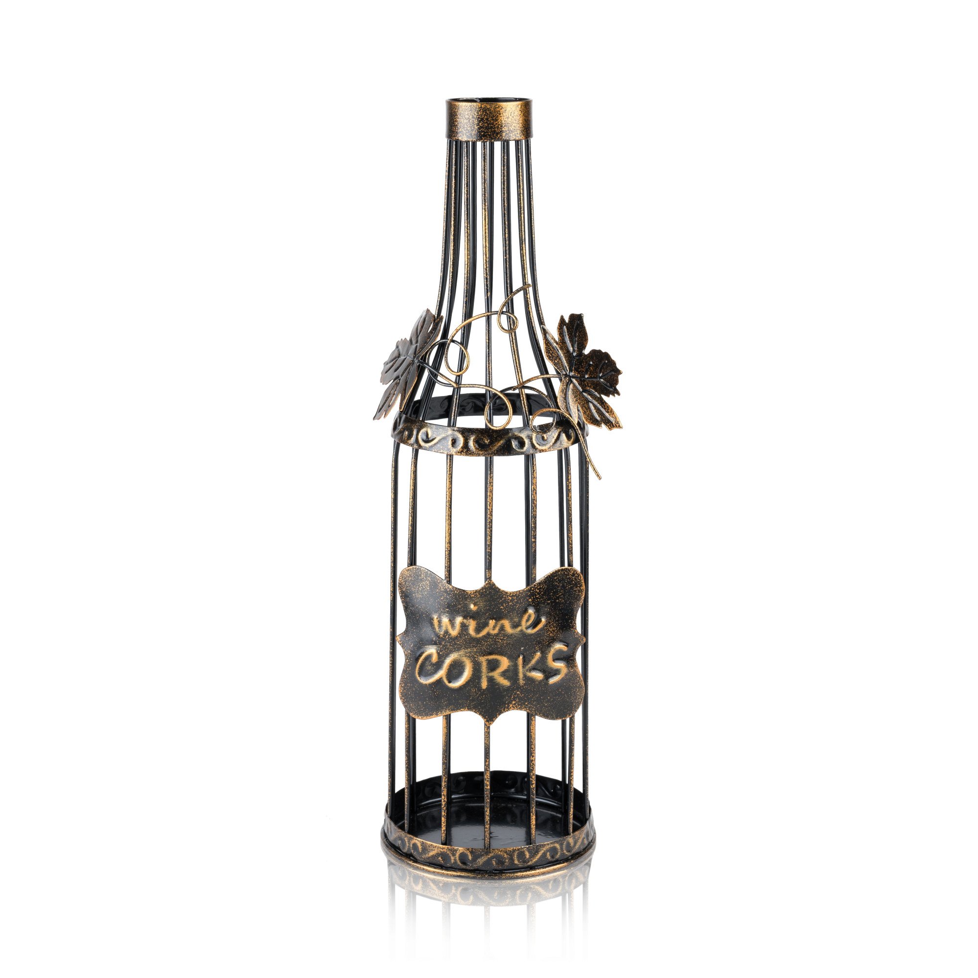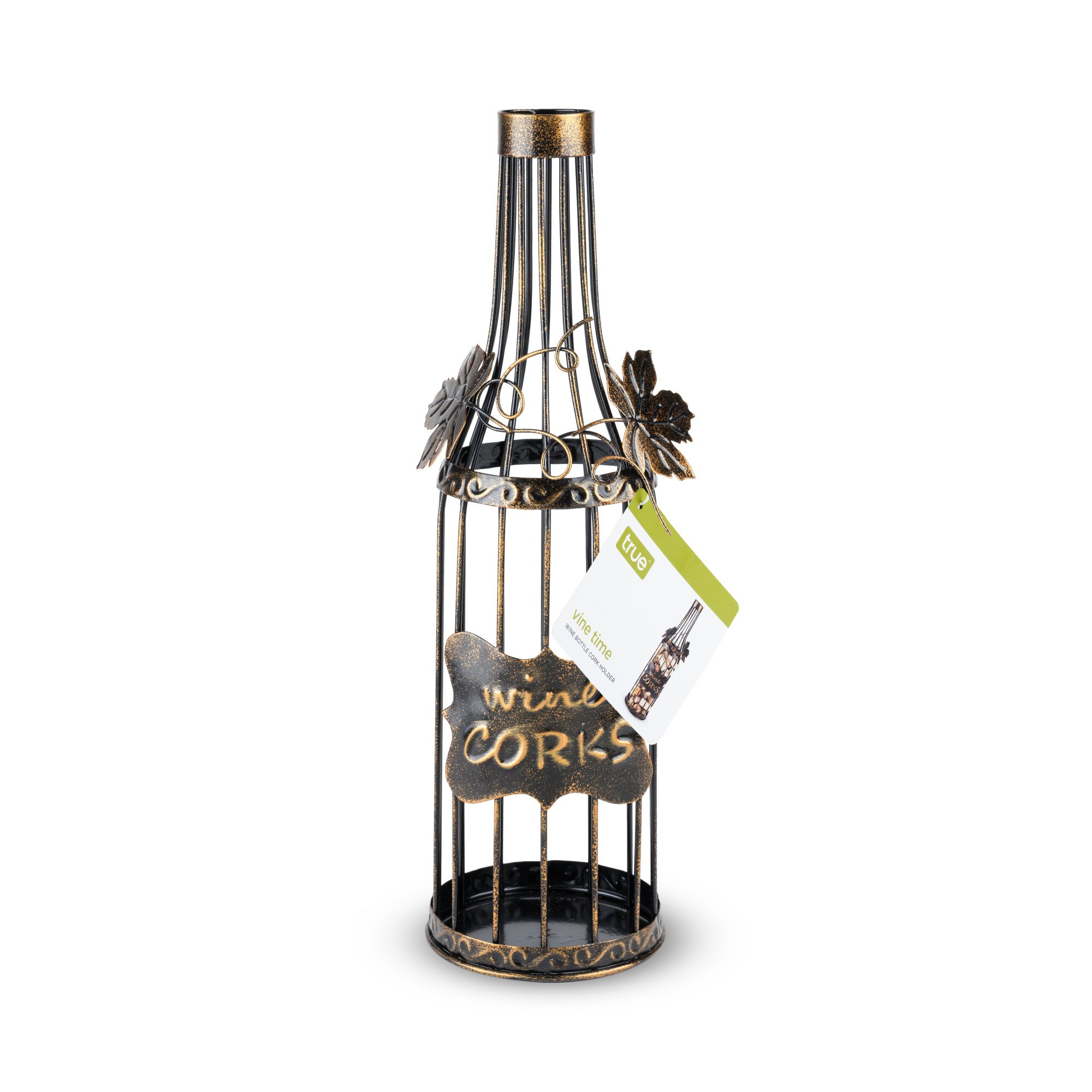 Form and function intertwine to create this metal cork holder. Its quaint wine bottle shape, bronze-tinted finish, and clever label are all sure to charm. Holds up to 60 corks to satisfy even the heartiest wine lovers. Crafted from sturdy metal. Makes a great gift for design-conscious wine lovers. Holds 60 corks, measures 15" H x 4.5" W, bronzed stainless steel, cage design.