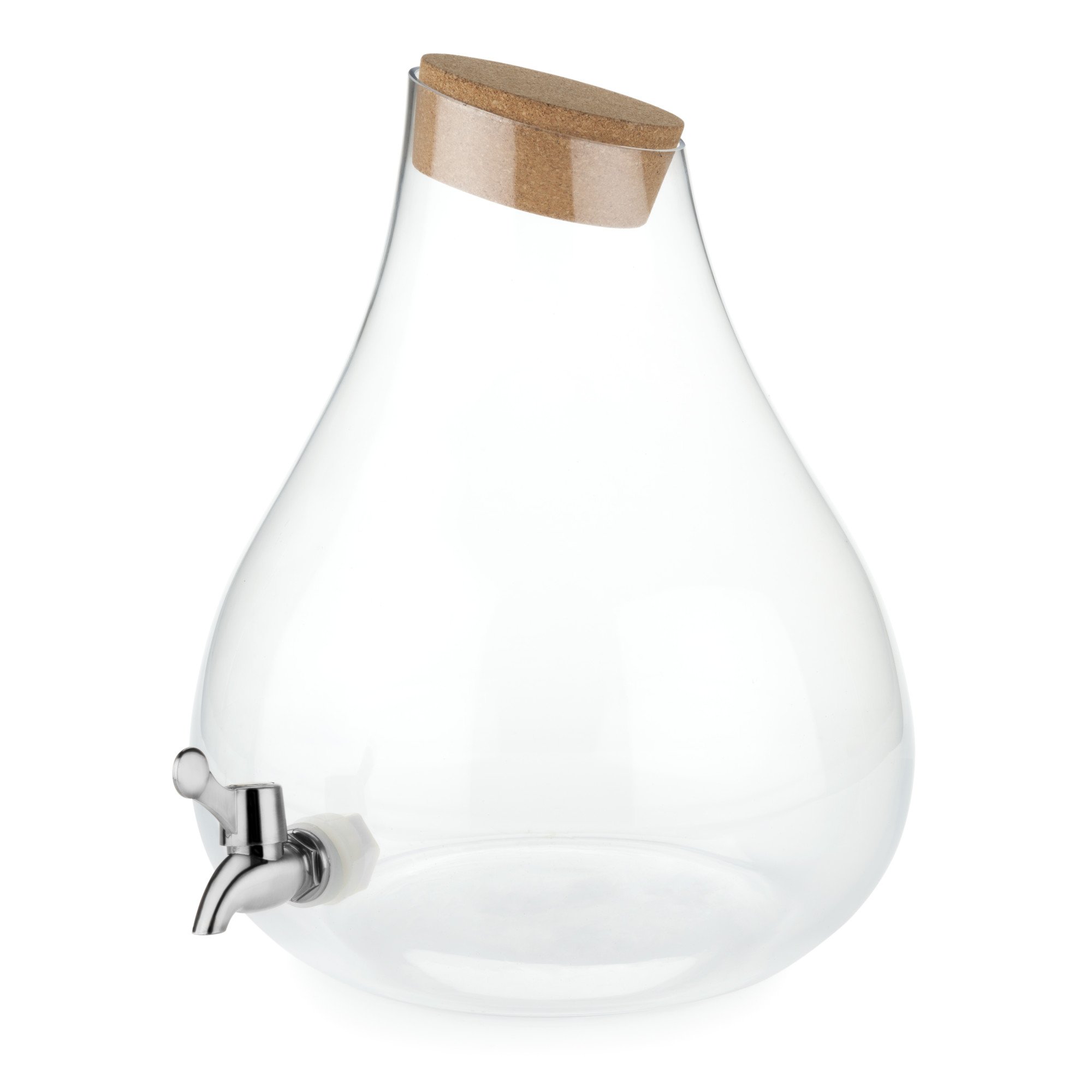 An elegant drink dispenser in a sweeping teardrop shape brings a truly unique aesthetic to any backyard celebration! Contoured in smooth glass with an easy-open cork top and petite silver spigot, this carafe accommodates 2.5 gallons of pink lemonade, sparkling punch or sweet iced tea.