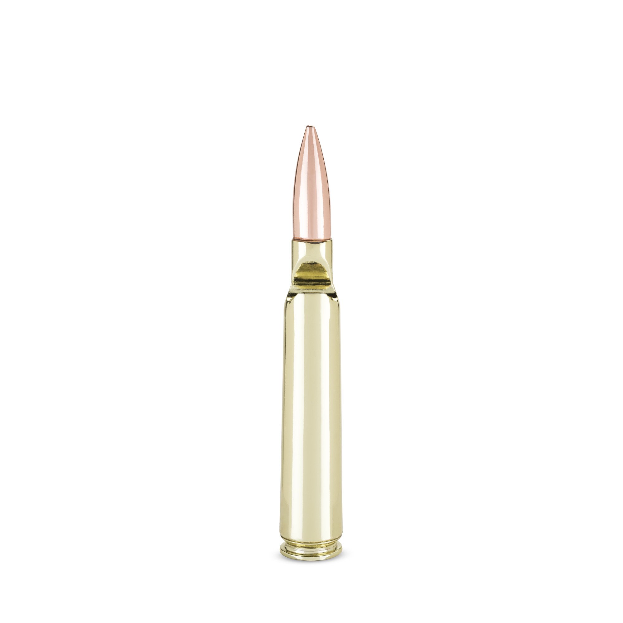 Choose a bottle opener that's of a higher caliber than most. A burnished copper projectile with an equally polished gold casing simulates the size and impressive shape of a 50 caliber bullet, built tough to break open any brew of your choosing.