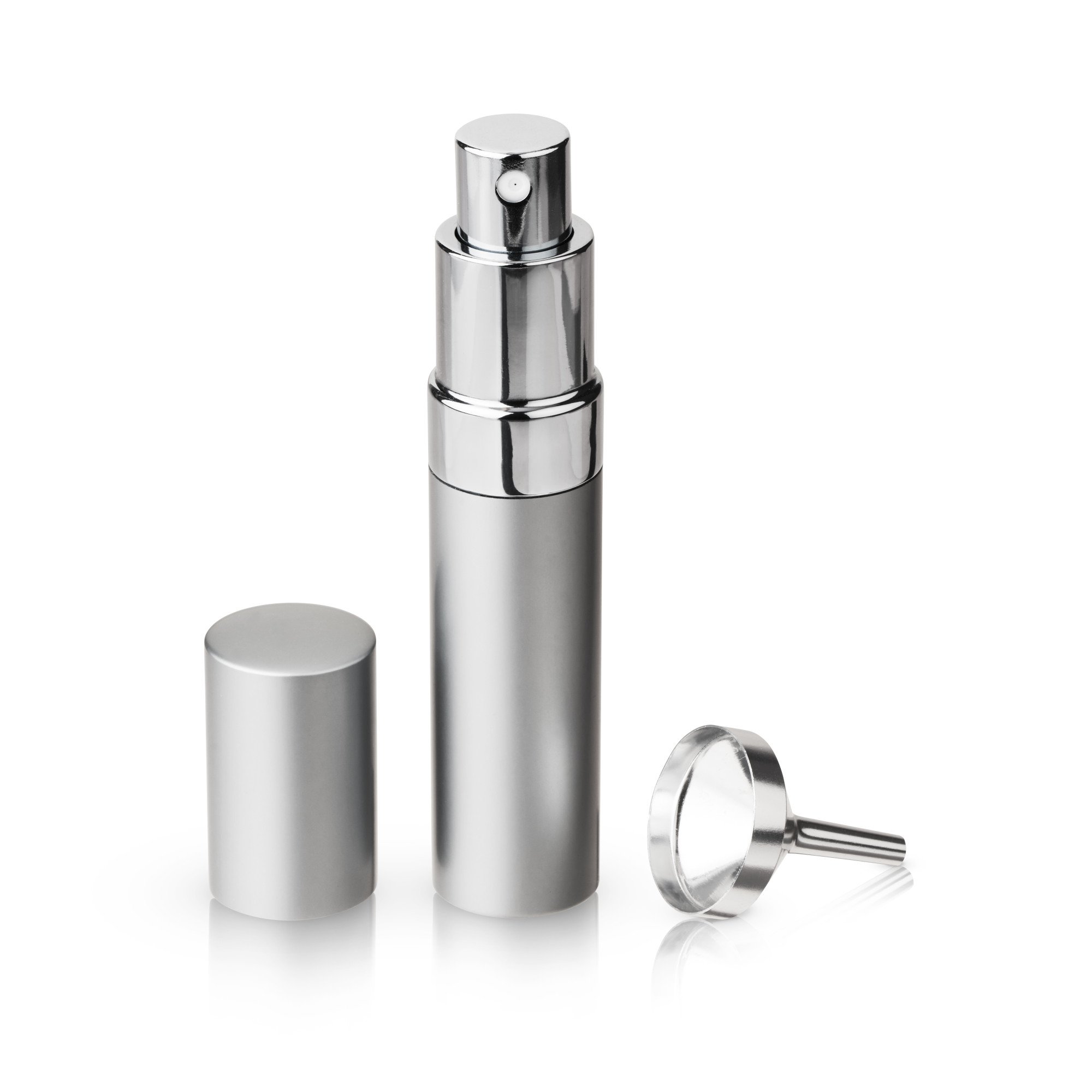 Introducing the True Martini Atomizer Bar Mister, a must-have in your bartending supplies collection. This remarkable gadget allows you to regulate your ingredients, adding just the right amount of flavor to your martinis. Whether you're crafting vodka martinis, gin martinis, or dirty martinis, the right amount of vermouth is an essential part of every martini cocktail recipe. Now, you can manage this with ease using our atomizer sprayer. It comes with a mini travel spray bottle made of glass, which holds up to 15ml of liquid. With its aluminum body guaranteeing durability, this mini glass spray bottles set is designed to last. Filling the mister bottle sprayer is effortless with the included funnel. You can fill the tube with vermouth, bitters, or lemon juice. The design of the mister spray bottle ensures that your ingredients are evenly distributed, so your ideal martini has a perfectly balanced hint of vermouth. And it's not just for martinis! The versatile atomizer sprayer can also spray a mist of Scotch over an old fashioned cocktail for a hint of smoke. This travel size spray bottle is also ideal for other barista tools or for travel purposes, fitting snugly in your travel bag. For a perfect martini, don't forget to use a martini glass, add olives, and use our travel atomizer refillable spray. This is a must-have among your bartending supplies, making the process of mixing drinks smoother and more precise.