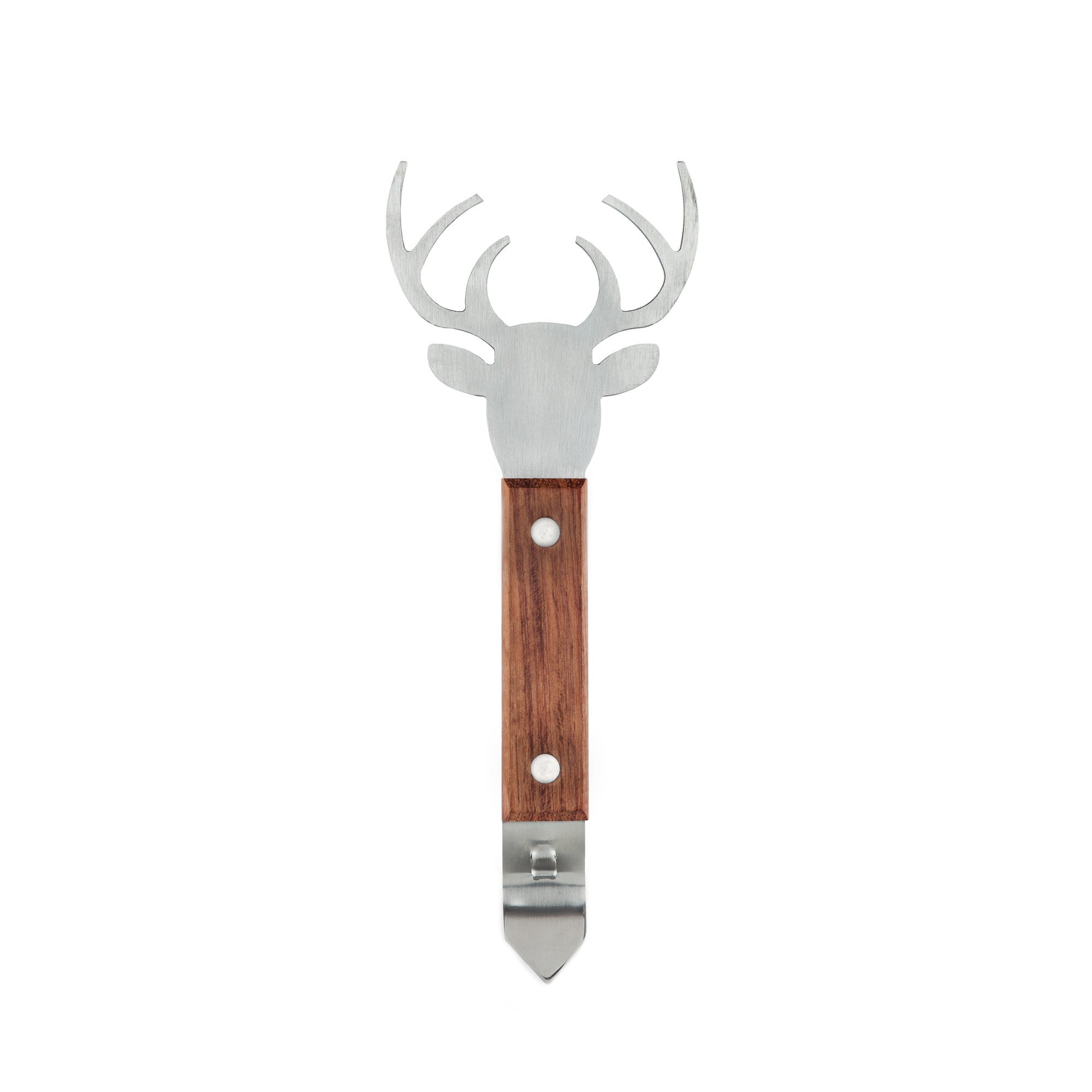 For sipping with friends or swigging solo, our rugged wood-handled stag bottle opener boasts carbon steel antlers and a flat church key base to make brisk work of caps and cans respectively. Going stag doesn't sound so bad anymore, does it?.