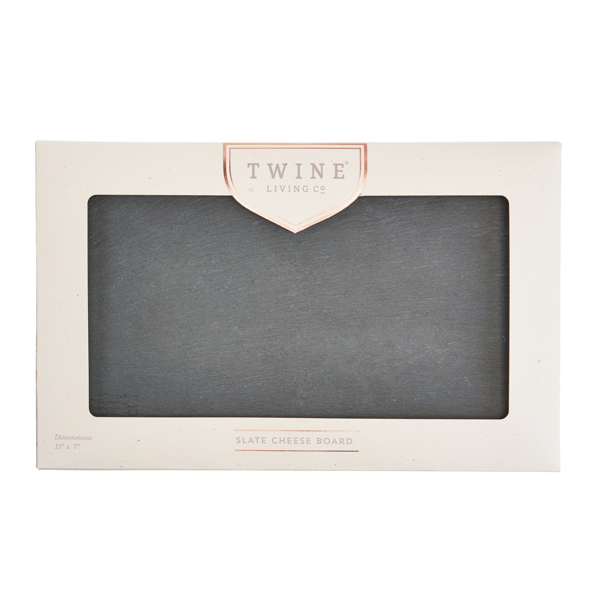 Our small rectangular slate board is the ideal size for serving up cheeses and snacks for a small get-together or family dinner. Add a few sprigs of fresh herbs or flowers as a finishing touch for the picture-perfect first course. Natural slate with padded feet Includes 2 pieces of soapstone chalk Hand wash only 11" by 7" Non-porous and food-safe Twine brings rustic farmhouse style to your entertaining for a warm, elegant feel at every event. Transport yourself to a vineyard getaway with Twine’s country home goods and essentials.