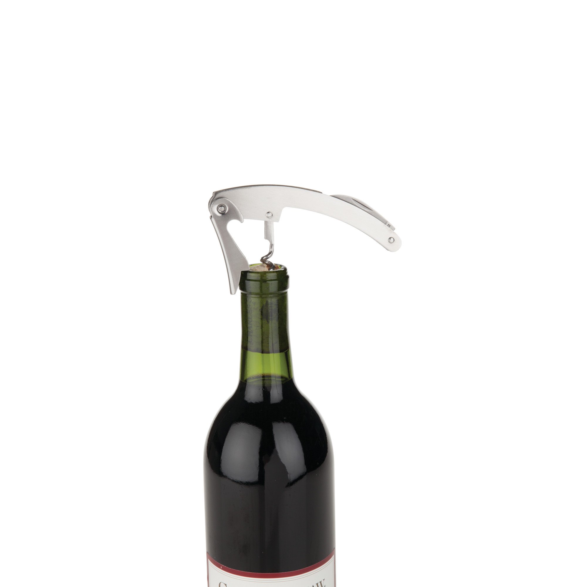 This stainless steel corkscrew does it all. With a five-turn worm, sleek foil cutter and slender curved handle, opening a bottle has never been smoother.