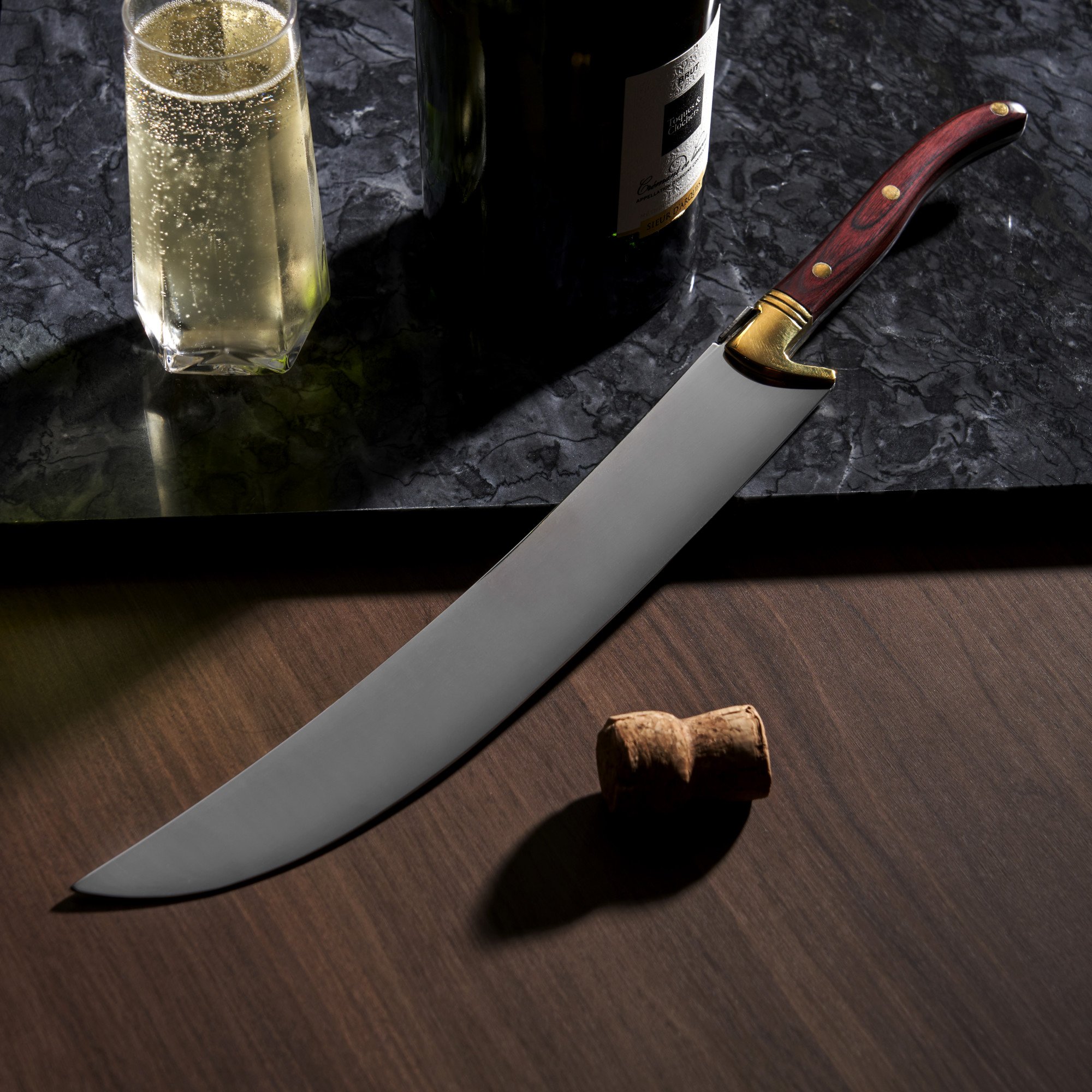 Champagne is meant to be savored - and occasionally sabered. Rooted in 19th century French tradition, the elegantly curved champagne saber slashes through bottles with ease - without the added danger of a standard saber's edges. 16.5'' long. Hand wash recommended.