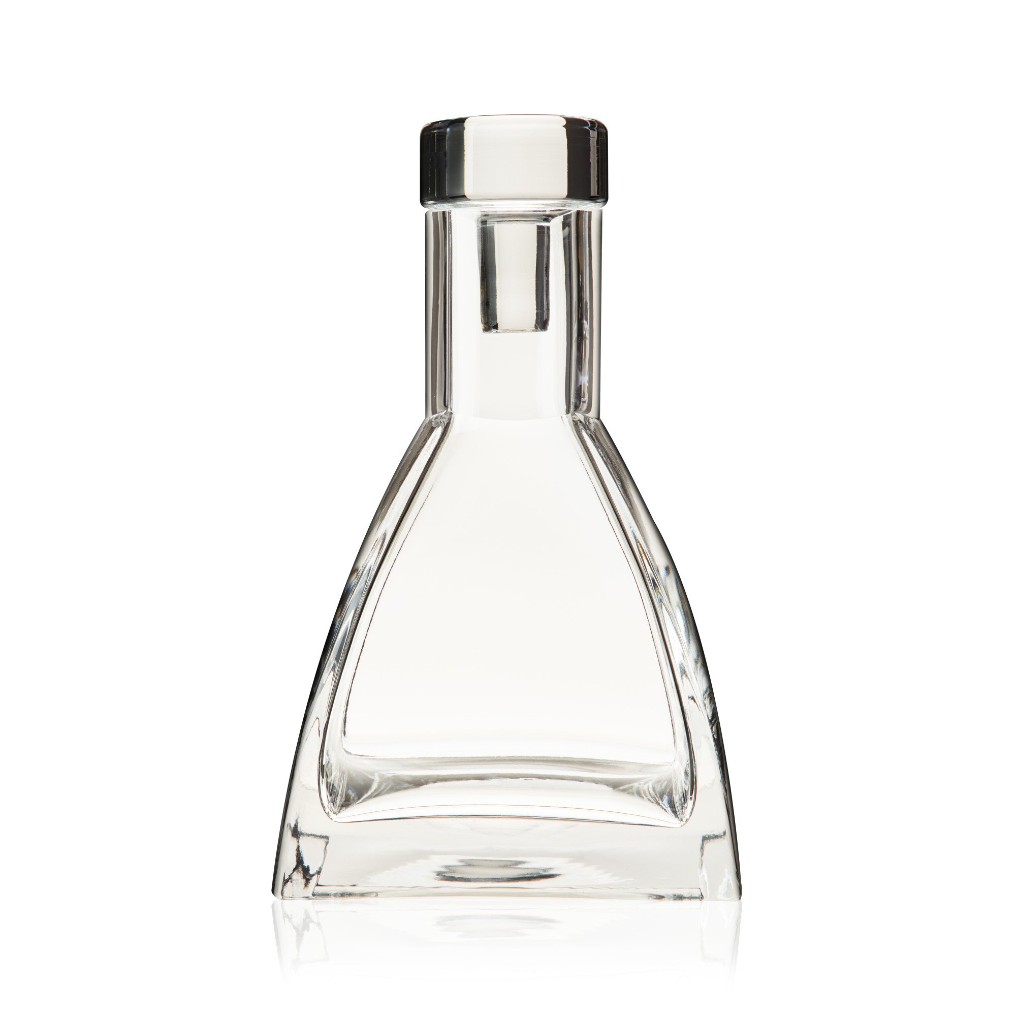 Stunning curves, a heavy base, and a triangular silhouette make this liquor decanter stand out. Hand-blown from crystal-clear, lead-free glass, this decanter is a timeless, elegant way to store and show off your favorite spirits. Holds 26 oz. and includes crystal stopper.
