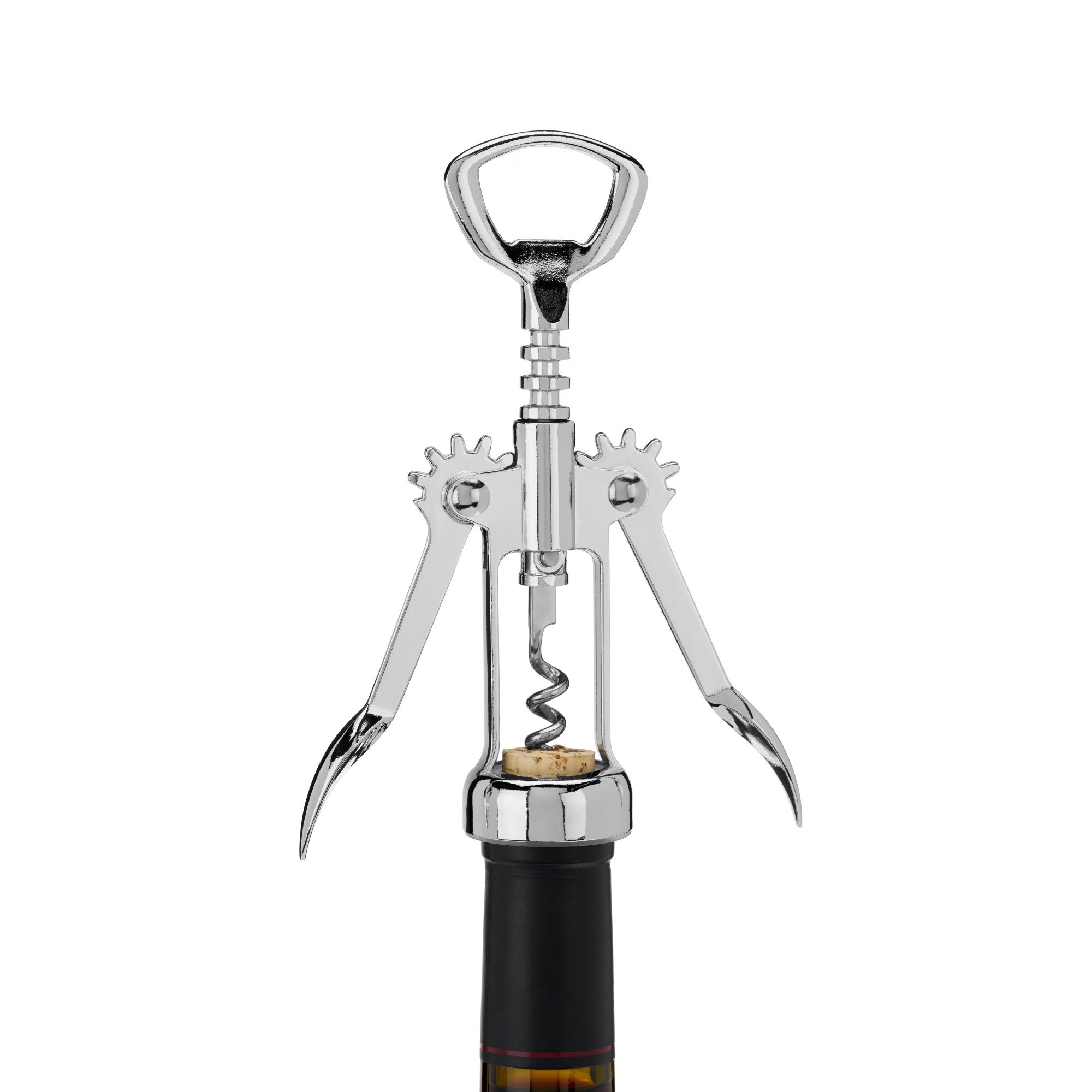 Fast and foolproof, the winged corkscrew is a classic for a reason. Our Soar™ Winged Corkscrew features a classy chrome finish, self-centering worm and built-in bottle opener. Screw the corkscrew into the cork and then press down the lever arms to remove the cork in one easy motion. What can we say? It’s pretty fly. All metal construction Lever arms Integrated bottle opener