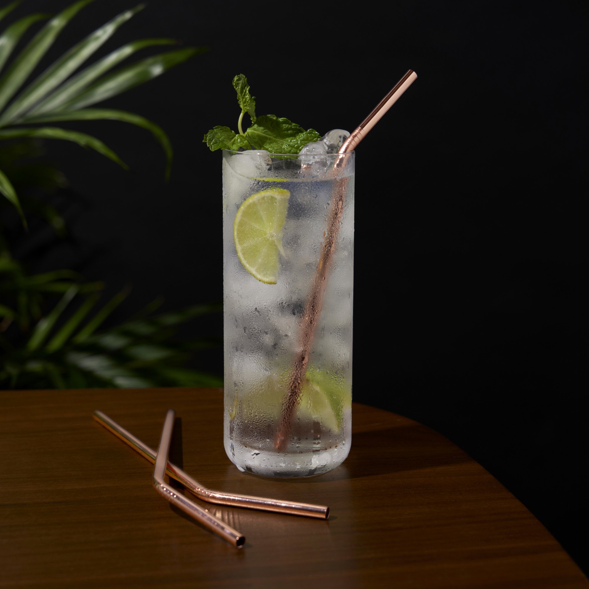 Skip the cherry and garnish your drink with a copper cocktail straw. Each one in this set of four arcs smoothly from any highball glass to your lips for the perfect sip. Measures 8'' long. Hand wash recommended.
