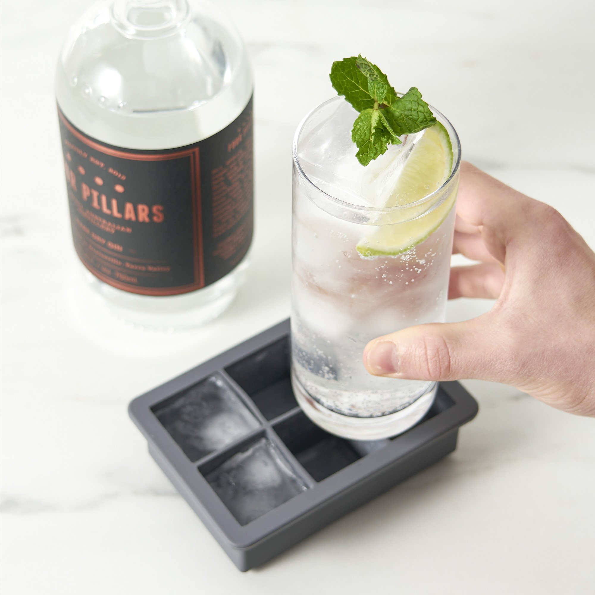 Create ice cubes with precision and symmetry in this flexible silicone tray. Designed specifically for highball glasses, perfectly sized ice cubes upgrade cocktails from basic to exceptional. A fitted lid prevents spills and allows easy stacking in the freezer. For added flavor and garnish, fill the molds with citrus fruit slices, herbs or use juice in place of water.