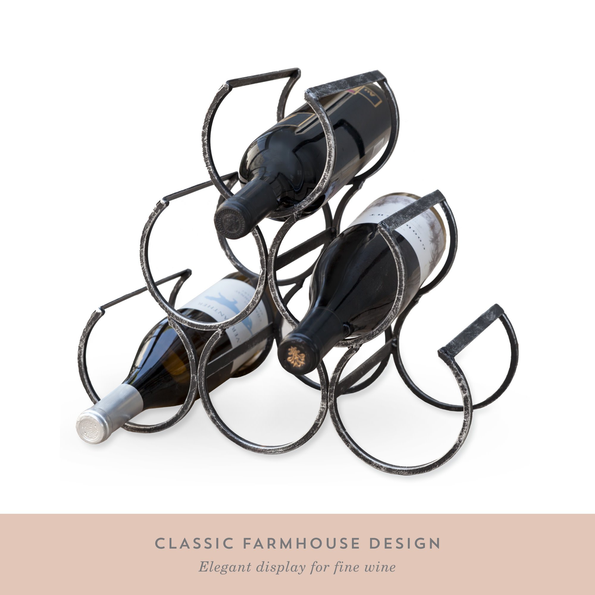 This sturdy cast iron wine rack will bring some country farmhouse style to your home bar or kitchen. Display and store your wine in this classic, elegant wine holder. Black cast iron with antiqued finish Holds 6 standard wine bottles 11.25" x 13" x 6.5" Classic vintage style This wine rack will transport you to a beautiful vineyard getaway in your own home. Twine’s collections emphasize rustic elegance, natural materials, and a nostalgic sense of quality. From elegant barware to quaint cheeseware, Twine ties everything together.